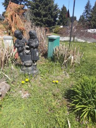 On my neighborhood walk this scene seemed to capture and somehow depicts that comfort can be found amidst, and despite, the decay and global chaos by which we are currently engulfed. Surrounded by death and disarray, the fountain dry, the man has his arm around the woman whose head is down.