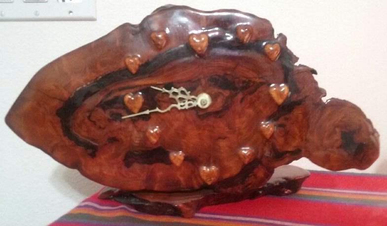 This beautiful clock, handcrafted with heart, has graced my life for decades. Full of love, it has been the subject of much good natured deliberation.