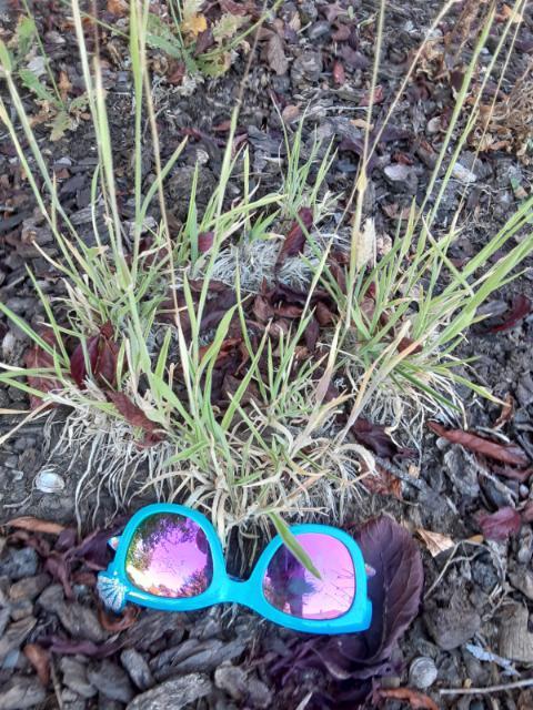 On my walk today I saw these rose colored glasses lying in weeds near the street. Notice the butterfly in the top corner of the right lens, a symbol of transformation.